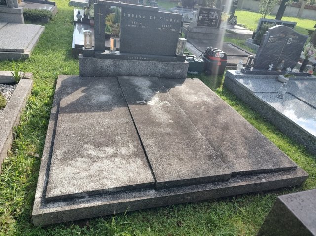 Nabízíme celkovou očistu hrobů a pomníků od atmosférického znečištění, mastných skvrn od vosku a rzi, včetně čištění městských a obecních pomníků, vyjma kulturních památek. Na čištění přednostně využíváme technologii kombinace mechanického a vysokotlakého čištění horkou vodou za použití speciální chemie. Tato technologie je vůči materiálu šetrnější, než technologie broušení, kterou především není možné použít na materiály /zejména starší teraco/, vykazující známky mechanického poškození /praskliny, drolení…/ Takto očištěný kámen /žula, mramor, pískovec, teraco/ po vyčištění naimpregnujeme, čímž získá delší odolnost proti dalšímu znečišťování, tj. cca 5 let.